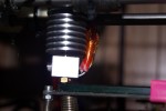 The new hot end is 95% metal with a short piece of PTFE tube in the centre. I’ve used it twice and it had already jammed. Pulling it apart, I found the PTFE tube had been damaged preventing the filament from being pushed to the hotend block. I’ve cleaned the jam and it’s working OK for now: