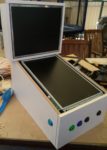 Holes for the buttons and plexi-glass is cut and it’s dry fit to see if it’s functional. At this stage the buttons, screens, laptop and cables fit inside.