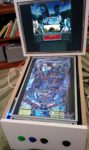 As this started out as a quick job, the design is basic and was roughed out on a piece of wood. The backglass monitor was a 17inch, which best matched the 20inch playfield monitor. The facia of the monitors are taken off and and the LCD panels are measured, then the backglass box and playfield cabinet are cut to fit around them. I added another 10cm to the hight of the playfield to make sure there is enough airflow and room for the cables.
